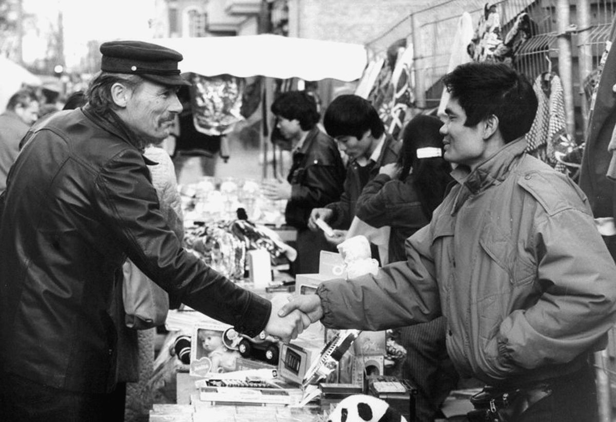 Vietnamesische Straßenhändler in Berlin, November 1990, Bundesarchiv Bild 183-1990-1102-011, Foto: Peer Grimm