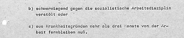 Laurinda M., VEB Oberlausitzer Textilbetriebe, hatte sich zwei Mal der Rückführung aufgrund von Schwangerschaft entzogen. Ihr Kind kommt im August 1987 nicht lebensfähig auf die Welt. Der Betrieb beantragt die Rückführung wegen „Disziplinlosigkeit“ und schreibt: „Wir bitten nunmehr dringend um Rückführung, da das Verhalten nicht geduldet werden kann und Auswirkungen auf die Disziplin im Wohnheim hat. Es erscheint uns dringend geboten, dass bei der RF die moc. Vertretung eingeschaltet wird, da wir wieder mit einer Weigerung rechnen müssen.“